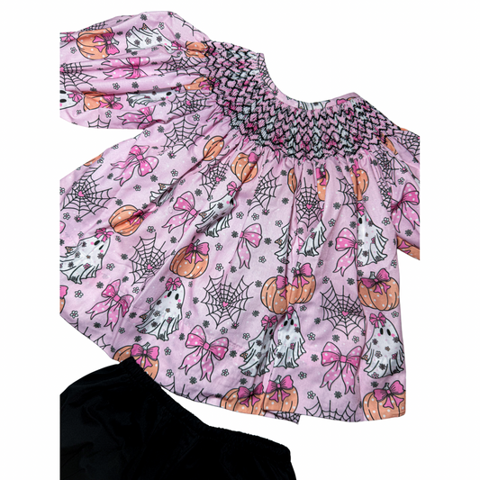 Girly Ghosts Bishop Smocked Bloomer Set