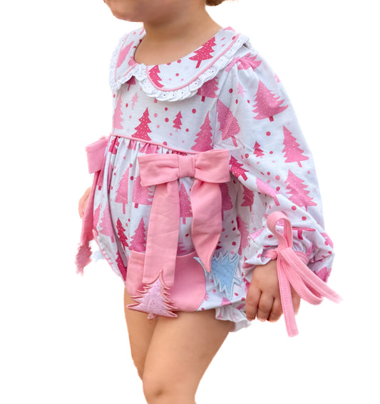 Pink & Blue Appliqué Christmas Trees Bubble